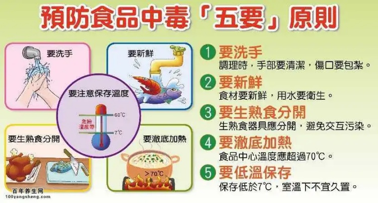 為了預防食源性疾病,我們應該牢記以下五個要點: